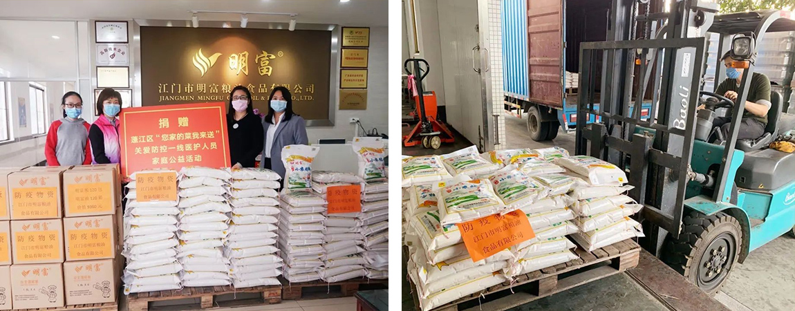 With the responsibility of local enterprises, Mingfu Cereals, Oil and Food actively responded to Jiangmen Women's Federation and the Municipal Bureau of Agriculture and Rural Affairs, the League Municipal Committee, the Municipal Health and Health Bureau and other departments to carry out "I will send your food" -- caring for Jiangmen medical teams and frontline medical care, prevention and control personnel family public welfare activities, actively donated a batch of Mingfu small farmers and edible oil, and offered to talk about your heart. To help relieve their worries.
